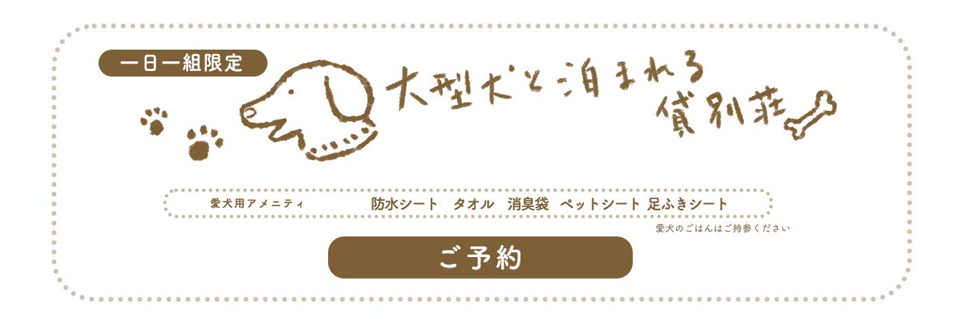 【お泊まり】貸別荘プラン、【昼間】大型犬・お友達とわいわいプランの2コースをご用意
